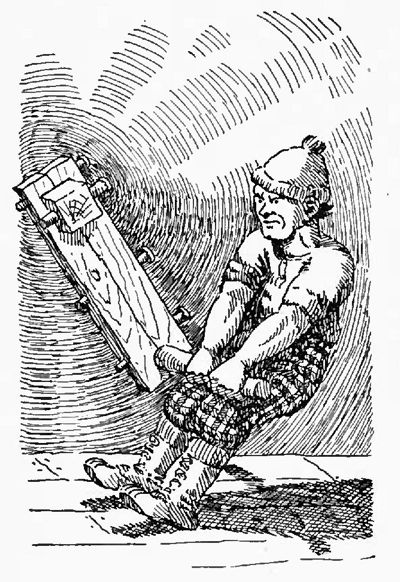 The shaggy dog that spent most of his time pretending to sleep in front of Johnny Inkslinger's counter in the camp office was Fido, the watch dog. Fido was the bug-bear (not bearer, just bear) of the greenhorns. They were told that Paul starved Fido all winter and then, just before payday, fed him all the swampers, barn boys and student bull-cooks. The very marrow was frozen in their heads at the thought of being turned into dog food. Their fears were groundless for Paul would never let a dog go hungry or mistreat a human being. Fido was fed all the watch peddlers, tailors' agents, and camp inspectors and thus served a very useful purpose.