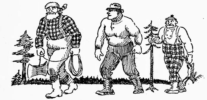 In these conversations the lumberjack often took on the mannerisms of the French Canadian. This was apparently done without special intent and no reason for it can be given except for a similarity in the mock seriousness of their statements and the anti-climax of the bulls that were made, with the braggadocio of the habitant. Some investigators trace the origin of Paul Bunyan to Eastern Canada. Who can say?