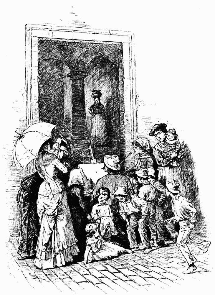 At one of the islands a prisoner was brought on board by two policemen. He was a slender youth—an apprentice to a mason, probably, for his poor clothes were stained with mortar and lime. He held himself stiffly erect, making a determined effort to present a brave countenance to the world. He was led to a place in the centre of the deck, and then one of his guardians departed, leaving the second in charge. The steamer lay in the harbor for an hour or more, and four times skiffs put out from the shore, each bringing two or three young men—or, rather, boys—who came up the ladder furtively. Reaching the deck, they edged their way along, first to the right, then to the left, until they perceived their comrade. Even then they did not approach him directly; they assumed an air of indifference, and walked about a little among the other passengers. But after a while, one by one, they came to him, and, taking bread from under their jackets, they put it hastily and silently into his pockets, the policeman watching them, but not interfering. Then, moving off quickly, they disappeared down the ladder in the same stealthy way, and returned to the shore. Through all their manœuvres the prisoner did not once look at them; he kept his eyes fixed upon a distant point in the bay, as though there was something out there which he was obliged to watch without an instant's cessation. All his pockets meanwhile, and the space under his jacket, grew so full that he was swathed in bread. Finally came the whistle, and the steamer started. Then, as the island began to recede, the set young face quivered, and the arm in its ragged sleeve went up to cover the eyes—a touching gesture, because it is the child's when in trouble, the instinctive movement of the grief-stricken little boy.
