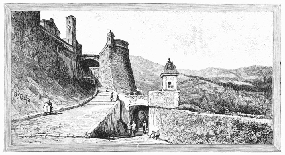 At Zante, for some unexplained cause, the classic associations suddenly vanished: Homer faded, Theocritus followed him; Pliny and Strabo disappeared. The later memories, too: Lord Guildford and his university, Byron and his Suliotes, Napier and his mules—all these left us. We were back in the present; we must have some Zante flowers and Zante trinkets; we thought of nothing but going ashore. By pushing a bench, with semi-unconscious violence, against the Greek, we succeeded in making him move a little, so that we could rise. Then we landed (but not in a caique), and went roaming through the yellow town. Zante is the most cheerful-looking place I have ever seen. The bay ripples and smirks; it is so pretty that it knows it is pretty, and it smirks accordingly. The town, stretching, with its gayly tinted houses, round a level semicircle at the edge of the water, smiles, as one may say, from ear to ear. And this joyful expression is carried up the hill, by charming gardens, orange groves, and vineyards, to the Venetian fort at the top, which, as we saw it in the brilliant sunshine, with the birds flying about it, seemed to be throwing its cap into the sky with a huzza.