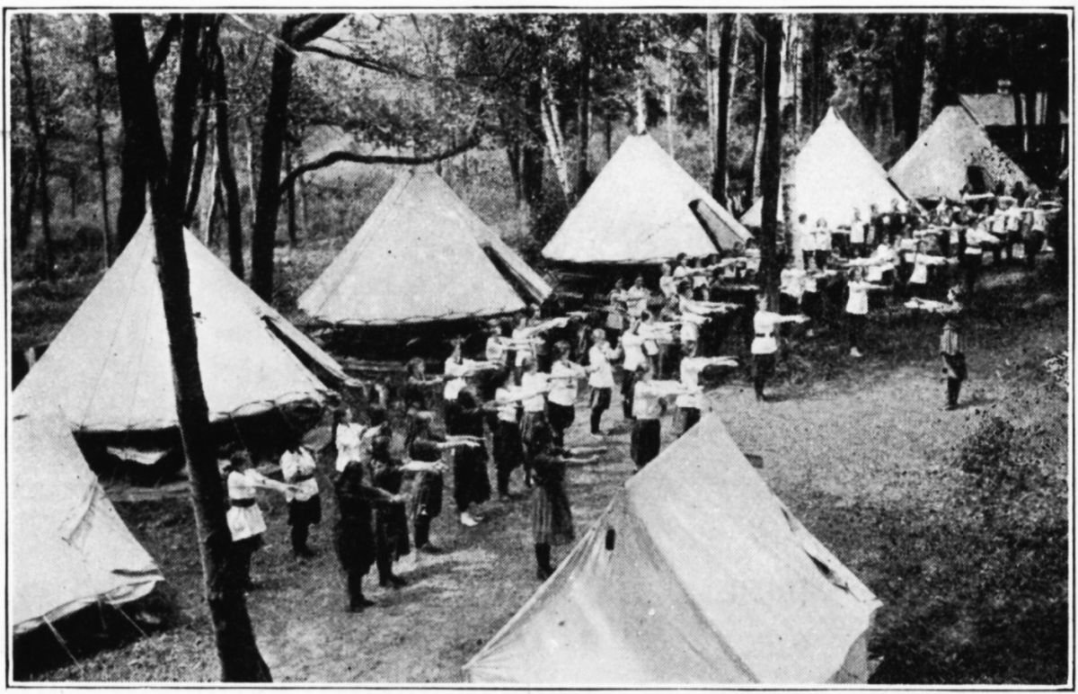 But when planning a camp for girls who are to receive the greatest benefits from living out of doors, and living together, there is no reason why their environment should not be made pleasing to the eye, of benefit mentally, a comfort to the body, and in accord with the best known laws which govern camping.