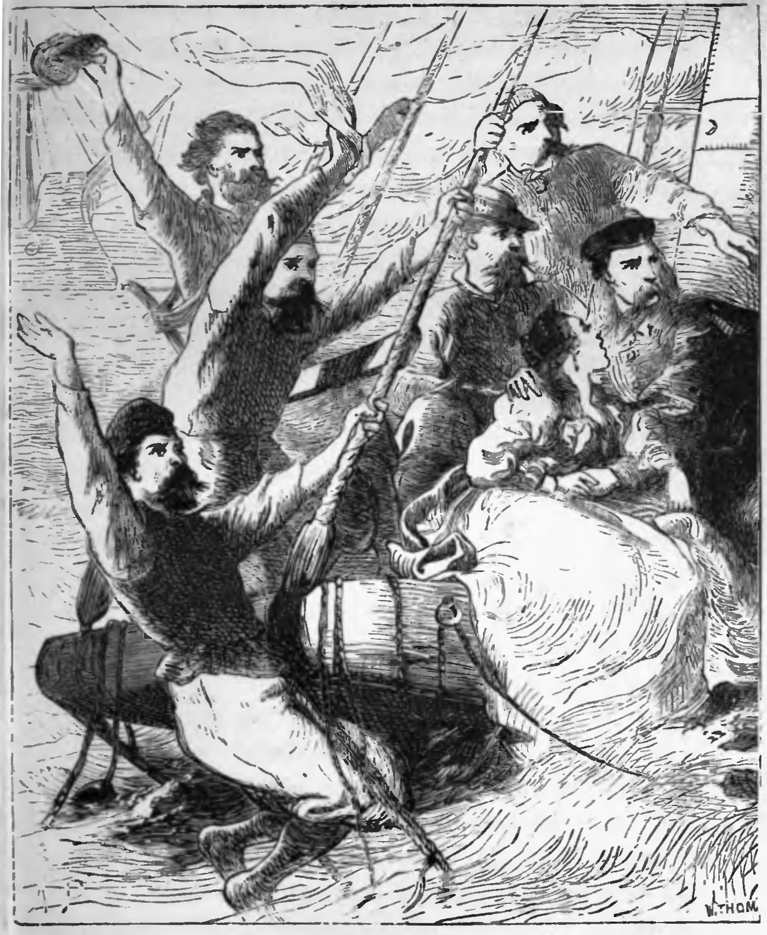 “Down with the helm! Haul the starboard tacks aboard, the sheets well aft!” cried Captain Langton in a tone which showed no sign of trepidation. “We may yet weather yonder reef, if the mast proves faithful. Courage, friends; courage!”