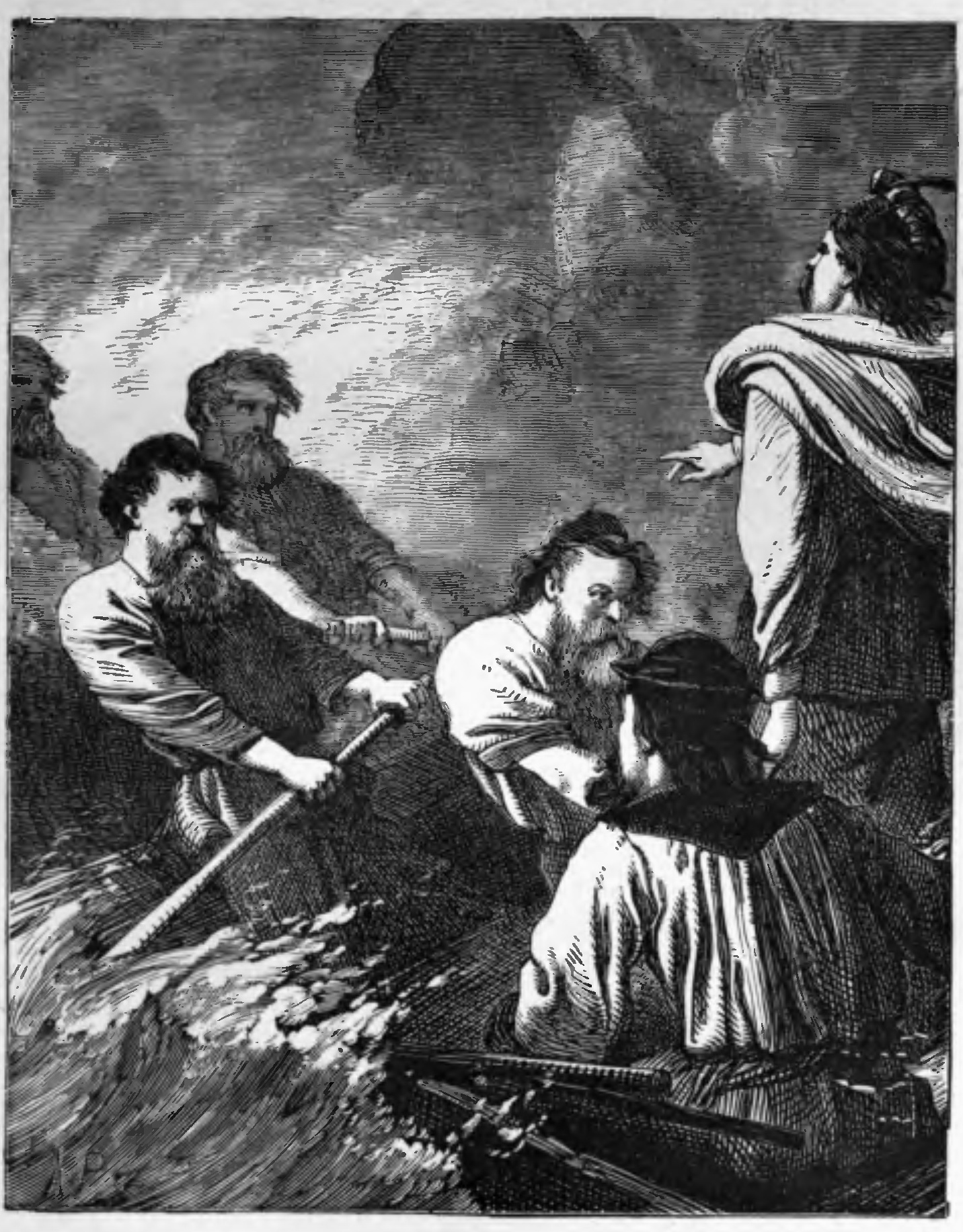 “Ay, ay,” was the answer. “The ship no longer drives; the wind is falling; the sea breaks here with far less force than farther out. Heaven be praised! Even now the ship may be saved!”