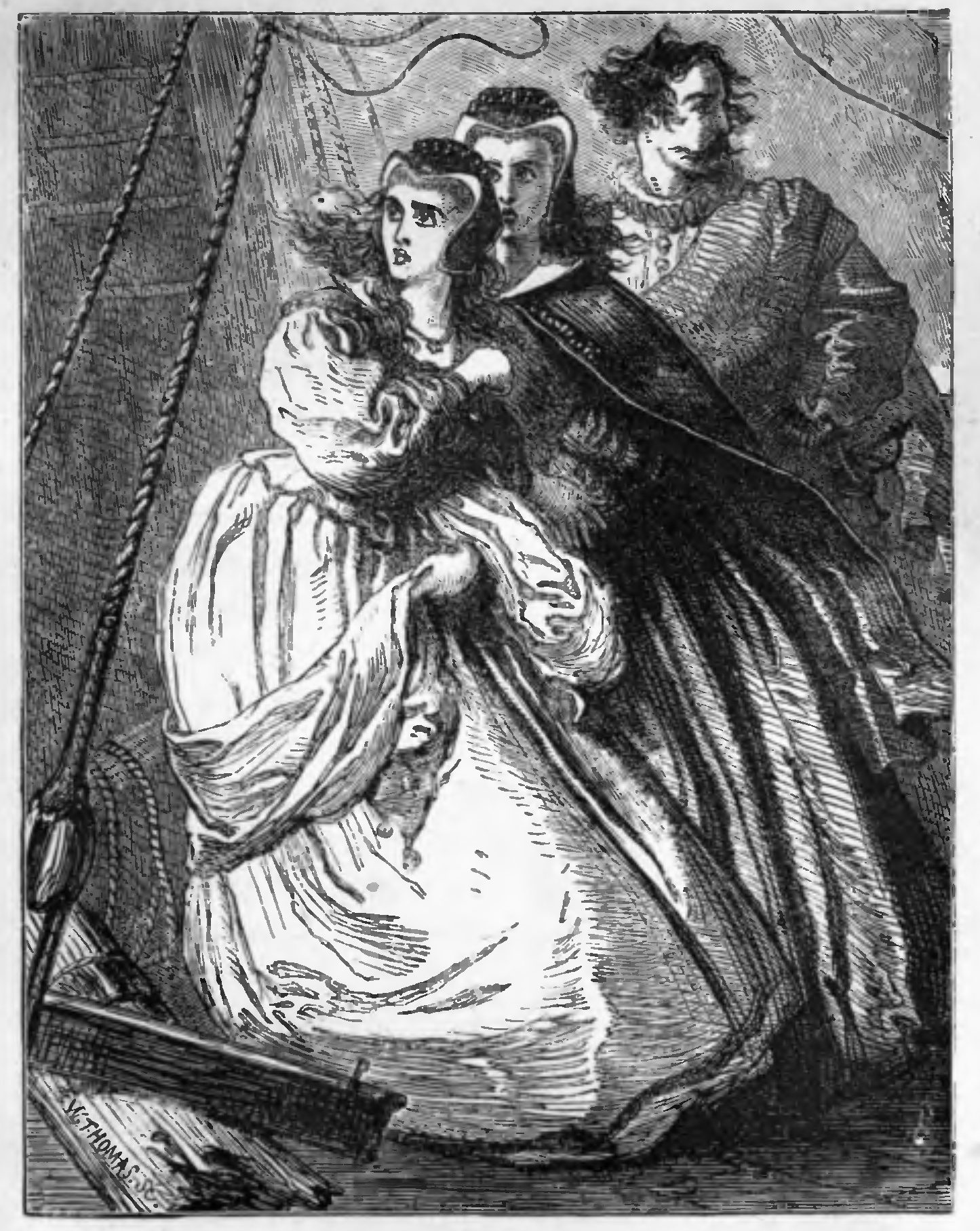 “Fair friend and sweet sister, I am about to exert some little authority over you,” he said. “Should yonder stranger prove to be a foe, you must descend into the hold, where you will be free from danger. When we have driven off, or captured, or sunk the enemy, we will summon you from your prison-house to rejoice with us in our victory, and to reward those who have exhibited most valour in the fight.”