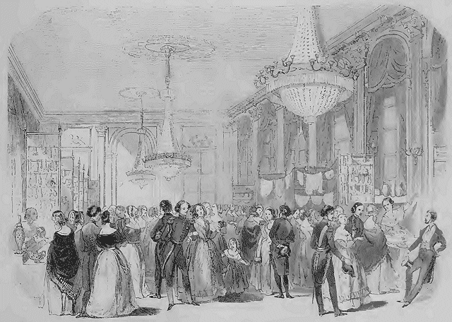 On va le soir porter son bravo à la voix de madame Damoreau; le matin, on avait donné son offrande aux infortunes de la Guadeloupe: ainsi l'on passe de la charité au plaisir. Quel meilleur emploi de la vie? Si le plaisir est ingénieux à séduire, heureusement la charité ne l'est pas moins. Après les bals bienfaisants et les concerts philanthropiques, que faire? Il semblait qu'on fût à bout d'attrayantes inventions; mais la charité a de l'imagination, Dieu merci! Voyez-vous ce palais d'un roi transformé en bazar? Des boutiques, des marchandises, des marchandes s'établissent et s'étalent sous ces lambris qui n'ont abrité jusqu'ici que des princes, des rois et des empereurs. Entrez, Messieurs! entrez, Mesdames! le vaste magasin est ouvert: choisissez à votre goût, achetez à votre fantaisie: l'or que vous jetterez ici retombera en consolations sur une terrible infortune; il donnera du pain aux affamés et relèvera les maisons incendiées. Marie-Amélie a patronné de sa protection royale cette vente publique au profit de la Guadeloupe infortunée, et aussitôt la salle du Palais-Royal, dite salle de la Reine, s'est ouverte à cette pensée bienfaisante. Comtesses et duchesses, le faubourg Saint-Germain et la Chaussée-d'Antin, prennent pince au comptoir. Voulez-vous des tableaux et des bronzes? madame de Chabot en tient un entrepôt complet. Des bretelles ou des gants? voyez madame de Montesquiou. Madame de Coigny ne laisse rien à désirer pour la confection des châles et des mantelets; et pour la bijouterie, mesdames d'Elchingen, de Fezensac, d'Hautpoul et de Castellane n'ont pas leurs pareilles. N'oubliez pas surtout mesdames de Trévise, de Praslin, de Ségur, de Montjoye, d'Audenarde, du Roure, de Lariboissière, de Vatry, etc., etc., elles sont assorties à la dernière mode et dans le goût du jour.