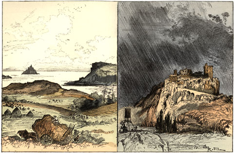 La petite ville de Kernoël les revit. Par autorisation spéciale, Georges Lorris put amener dans une anse de la petite baie un aéro-chalet des plus confortables et s'y installer avec Estelle à 50 mètres au-dessus de la grève, dans l'embrun de la mer et le parfum des landes, devant un panorama splendidement pittoresque de criques sauvages ou de pointes rocheuses hérissées de vieux clochers, de forêts de chênes enchâssant dans l'émeraude frissonnante de vieilles ruines féodales ou de mystérieux cercles de pierres celtiques...