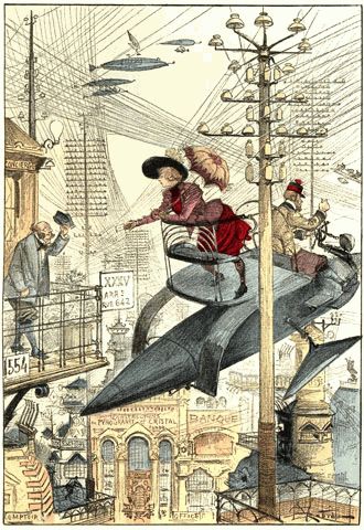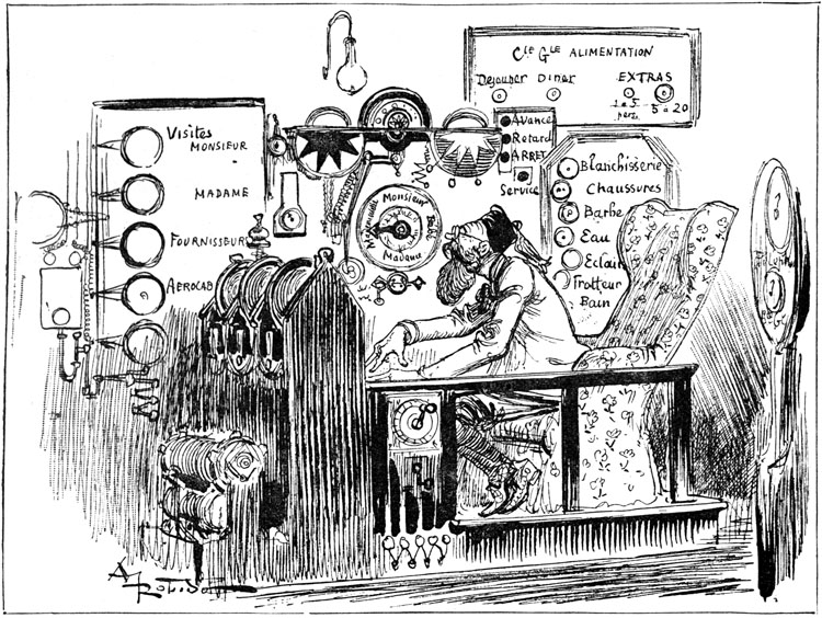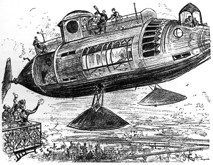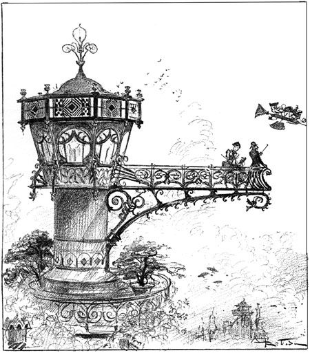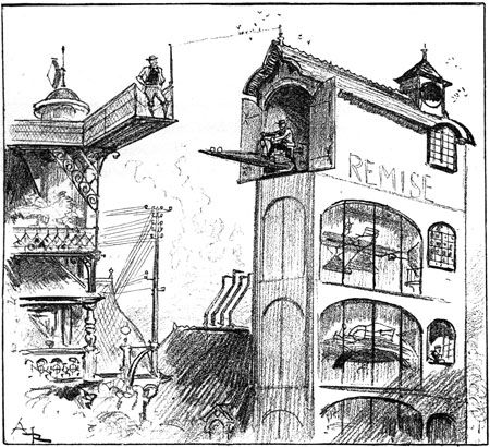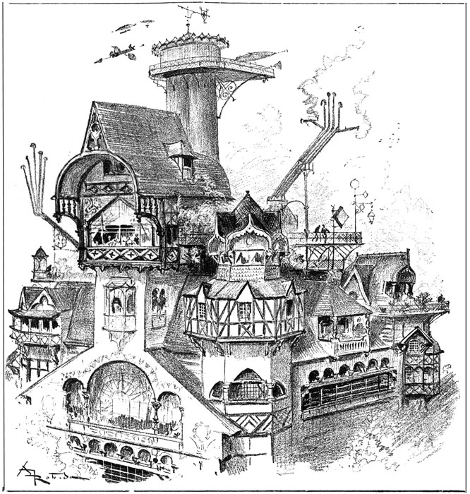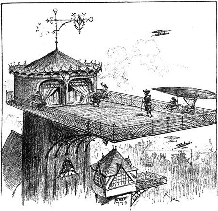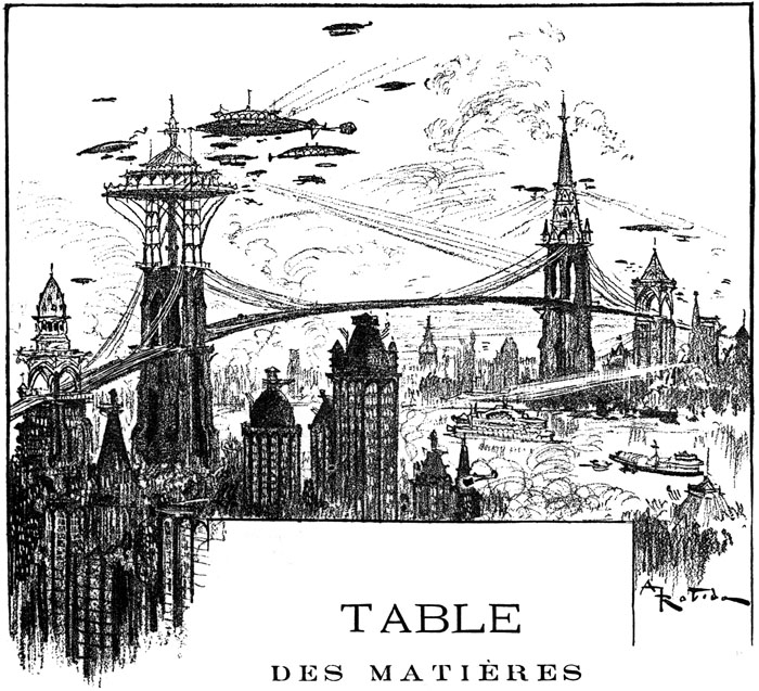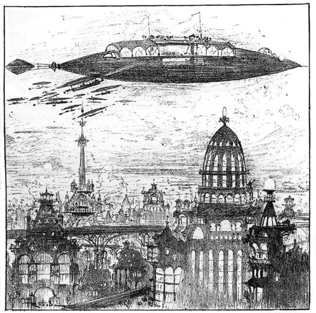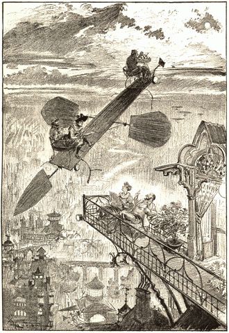 La noce se dirigea ensuite vers l'église, où se pressaient déjà toutes les notabilités de la science, de la politique, de l'industrie, du haut commerce, des lettres et des arts. Plus de douze cents aéronefs ou aérocabs se balançaient au-dessus de l'édifice et ce fut un charmant coup d'œil que le défilé de tous ces élégants véhicules aériens escortant les nouveaux époux jusqu'à l'hôtel Philox Lorris.