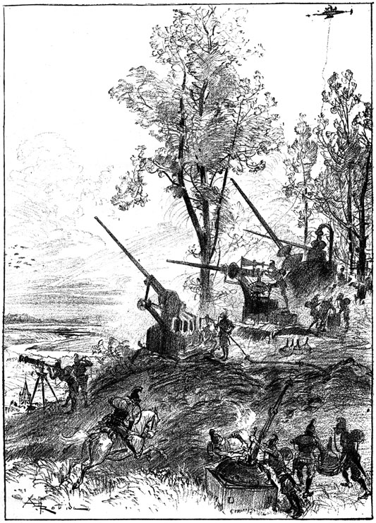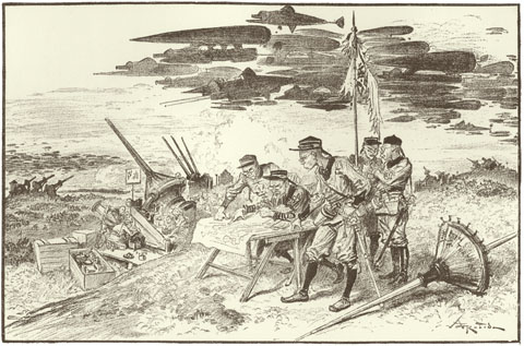 | VII. | Ordre d'appel. Mobilisation des forces aériennes, sous-marines et terriennes du XIIe corps. Comment le huitième chimistes se distingua dans la défense de Châteaulin. Explosifs et asphyxiants. Le bouclier de fumée. |