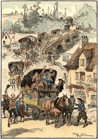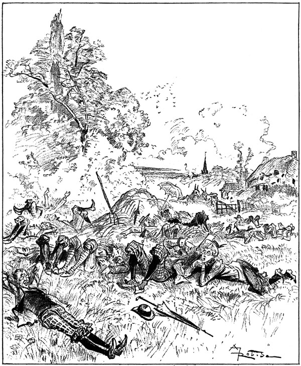 Les semaines passèrent vite dans ces délicieuses solitudes... Un jour vint cependant où elles furent envahies. C'était le commencement des vacances. Toutes les diligences du pays, toutes les carrioles, toutes les guimbardes roulaient chargées de gens pâles et fatigués, dont les têtes ballottaient sous les cahots des chemins. C'était l'arrivée annuelle des citadins lamentables venant chercher le repos et puiser de nouvelles forces dans le calme et la tranquillité des landes, l'arrivée de tous les énervés et de tous les surmenés, accourant se rejeter sur le sein de la bonne nature, haletants des luttes passées et heureux d'échapper pour quelque temps à la vie électrique.