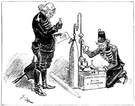 | La guerre miasmatique. Manœuvres de l'artillerie du corps médical offensif. | 225 |