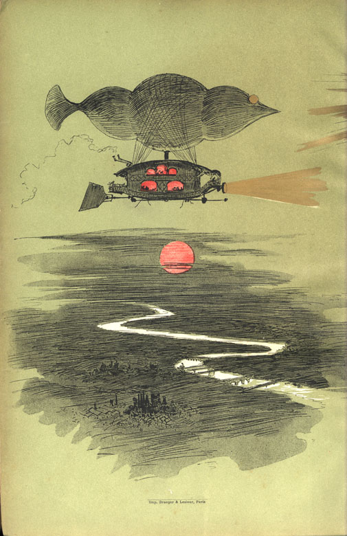 Le plus terrible sinistre eut lieu entre Orléans et Tours. L'Aéronautic-Club de Touraine donnait, ce jour-là, ses grandes régates annuelles. Mille ou douze cents véhicules aériens, de toutes formes et de toutes dimensions, suivaient avec intérêt les péripéties de la grande course du prix d'honneur, où vingt-huit aéroflèches se trouvaient engagées. Tous les regards suivant les coureurs, dans la plupart des véhicules on ne s'aperçut pas que l'aiguille de l'électromètre s'était mise à tourner follement, et, parmi les hourras et les cris des parieurs, on n'entendit même pas la sonnerie d'alarme.
