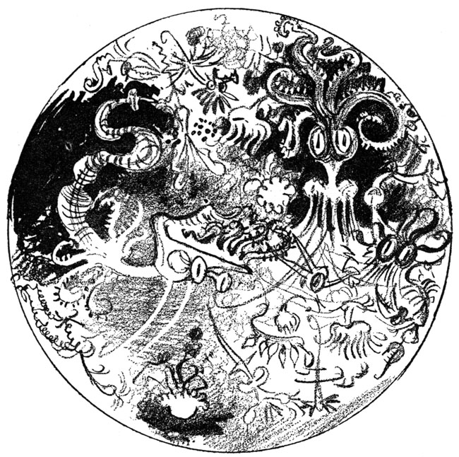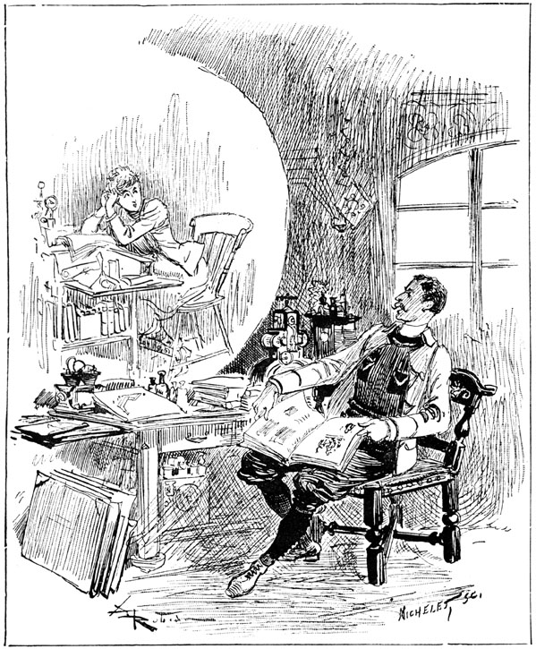 «Oui! un artiste! s'écria-t-il, et encore un artiste idéaliste, nébuleux, romantique, comme ils disaient alors, un rêveur, un futiliste, un éplucheur de fadaises!... Tu penses bien que je me suis renseigné... Pour connaître toute l'étendue de mon malheur, j'ai consulté nos grands artistes actuels, les photo-peintres de l'Institut... Je sais ce qu'il était, ton trisaïeul! N'aie pas peur, il n'aurait pas inventé la trigonométrie, ton trisaïeul!... Il n'eut à sa disposition qu'une cervelle légère et vaporeuse évidemment, comme la tienne, dépourvue des circonvolutions sérieuses, comme la tienne, car c'est de lui que tu tiens cette inaptitude aux sciences positives que je te reproche. O atavisme! voilà de tes coups! Comment annihiler l'influence de ce trisaïeul qui revit en toi? Comment le tuer, ce scélérat? Car tu penses bien que je vais lutter et le tuer...