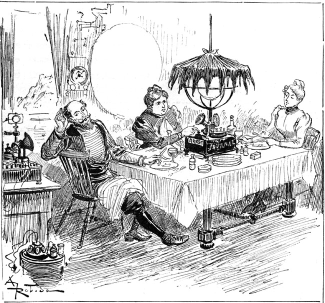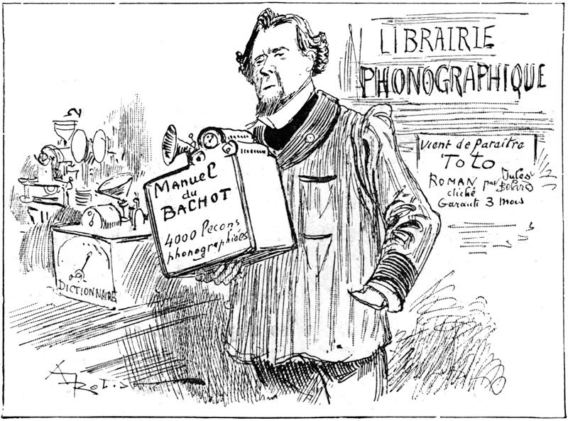 | IV. | Grande soirée artistique et scientifique à l'hôtel Philox Lorris. Où l'on a la joie d'entendre les phonogrammes des grands artistes de jadis. Quelques invités. Première distraction de Sulfatin. Les phonographes malades. |