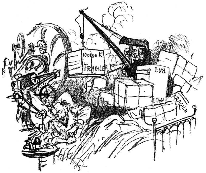 Georges se disposait à répondre lorsque se produisit la première secousse électrique due à l'accident du réservoir 17. Georges tomba dans son fauteuil et leva vivement les jambes pour éviter le contact du plancher qui transmettait de nouvelles secousses. Son père n'avait pas bronché.