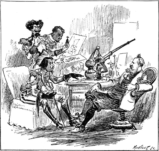 | V. | M. le député Arsène des Marettes, chef du parti masculin. La Ligue de l'émancipation de l'homme. Encore Sulfatin. M. Arsène des Marettes songe à son grand ouvrage. |