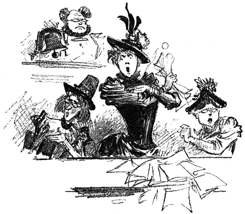 Hâtons-nous de dire, à la louange du sens pratique de ces dames, que leur colère bien justifiée s'apaisa vite devant les explications de M. Philox Lorris et qu'elles consentirent à discuter elles-mêmes les propositions de leur adversaire, au lieu de le renvoyer aux hommes de loi.