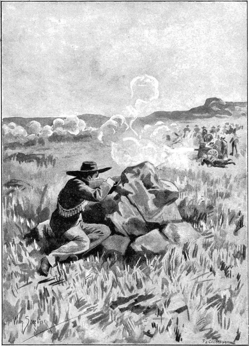 Over een der breede, stoffige heirwegen, die heuvel op en heuvel af de Transvaalsche wildernissen doorkruisen, reed, vroeg in den voormiddag—het was in het jaar 1894—een eenzaam ruiter.