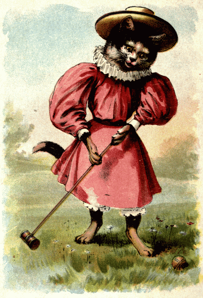 But the roguish cat at her fireside sat,
