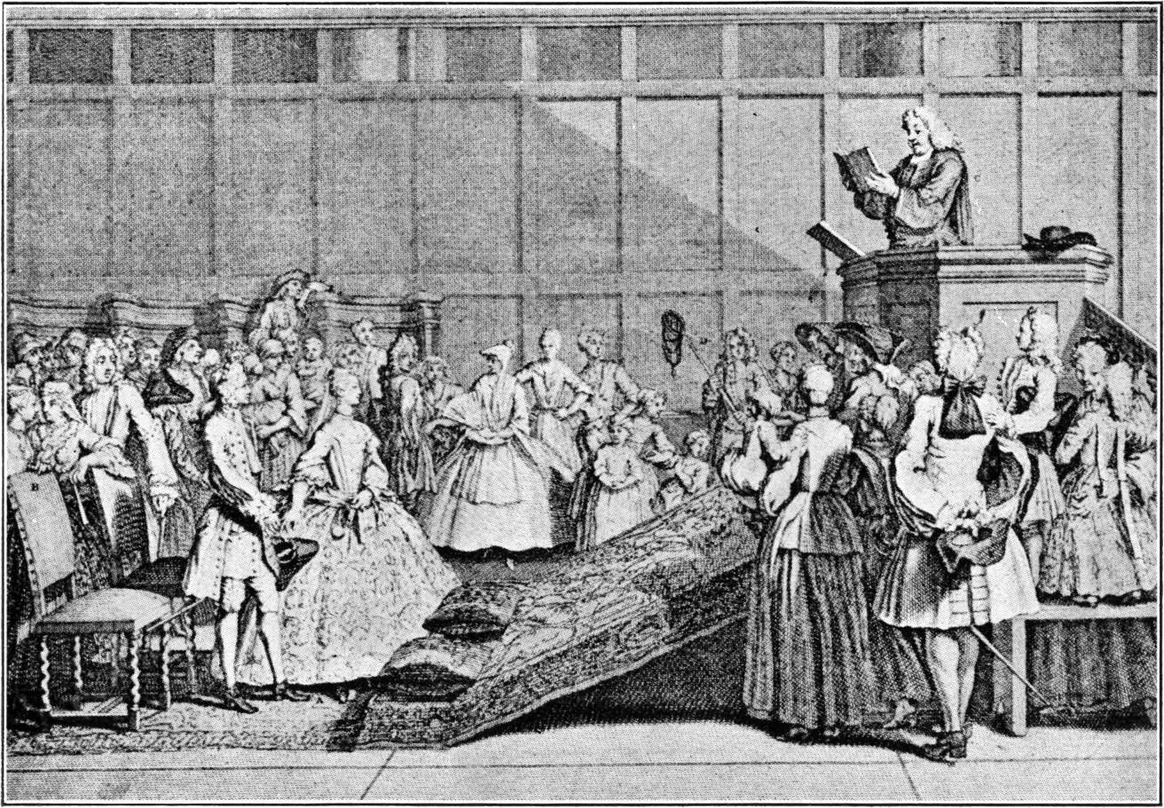 Als de 18de eeuw echter hare intrede heeft gedaan, rijzen er talrijke klachten over de ontheiliging des huwelijks, die wij als betrouwbaar moeten erkennen. Voor een deel is hier de invloed van eene weelde, die geen tegenwicht meer vond in vroegere robuuste kracht en energie, wat te erkennen nog iets anders is, dan de 18de eeuw, naar ouden trant, in haar geheel eene eeuw van verval te noemen, wat zij zeker niet was. Voor een ander deel zijn hier buitenlandsche invloeden, wat (wederom) te erkennen niet hetzelfde is, als alle zedenbederf uit het buitenland te laten indringen. Frankrijk gaf in sommige kringen den toon aan, maar voor Engelsche invloeden was het 18de-eeuwsche vaderland ook bijzonder gevoelig. En in Frankrijk was het alsof alles tegen het huwelijk samenspande. „Il a contre lui les relâchements, les accommodements de la morale sociale, la liberté chaque jour plus grande des habitudes privées”. Aldus De Goncourt en aldus het getuigenis o. a. van de talrijke mémoires van het tijdperk. En deze voorbeelden vonden hier navolging, het werd mode. Justus van Effen, in het tweede kwart der eeuw, zegt terecht (in een van zijne vroegere, Fransche geschriften): „La politesse des manières, qui distingue si avantageusement l'Europe des autres parties du monde, a introduit comme une mode le mépris de l'amour conjugal. Dans nos villes capitales un homme, qui y tient quelque rang se croiroit deshonoré s'il ne préféroit pas aux caresses légitimes de la plus aimable femme la tendresse étudiée et artificielle de quelque salope dont tout le mérite est dans les jambes ou dans le gosier”. Hetzelfde verschijnsel, maar anders verklaard, omschrijft de vrijheer Knigge, wiens „Ueber den Umgang mit Menschen”, 1788, hier reeds het volgende jaar eene vertaling vond: „de schuld zal voorzeker bijna altijd aan de vrouw liggen, wanneer een man, die in andere opzichten geen slegt man is, den kus, welken hij van getrouwe, zuivere en warme lippen, op eene eerlijke wijze en gemakkelijk in zijn huis zou kunnen ontvangen, met verwaarloozing van pligt en betamelijkheid bij vreemden haalt”.
