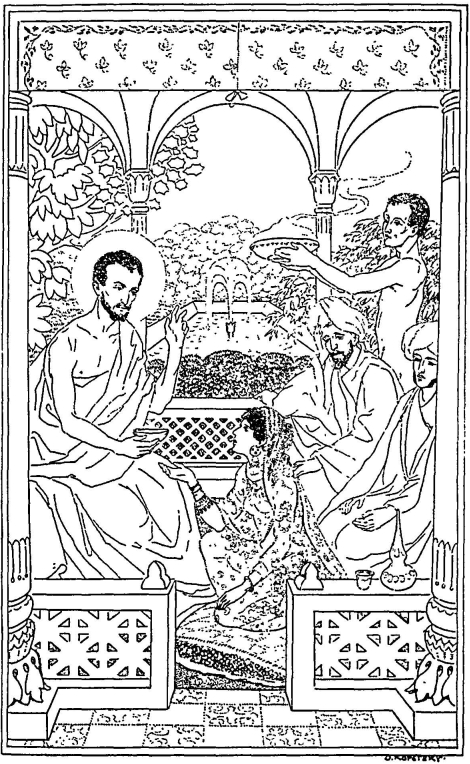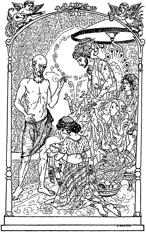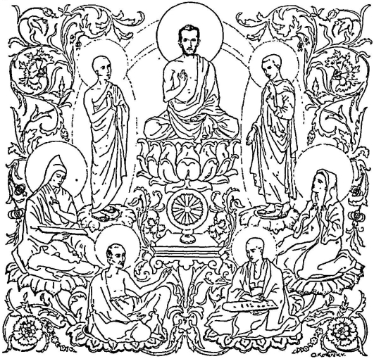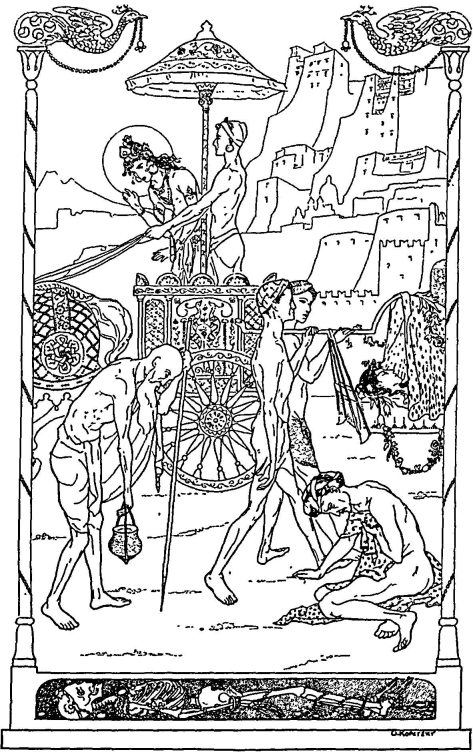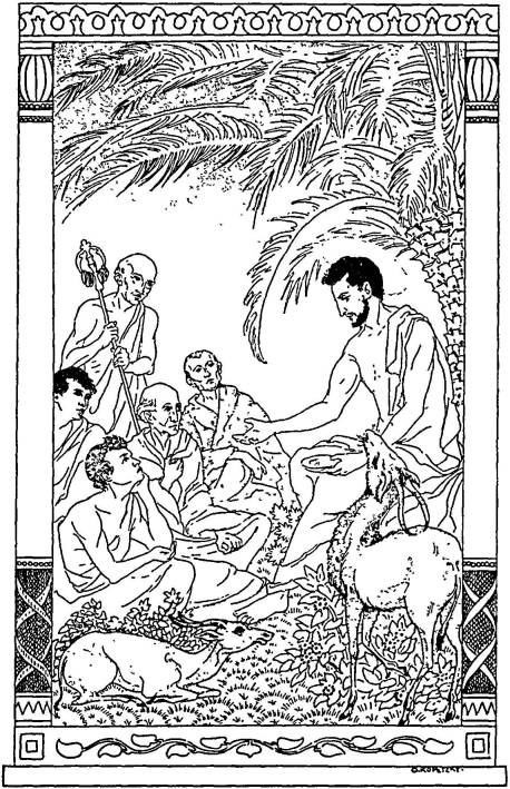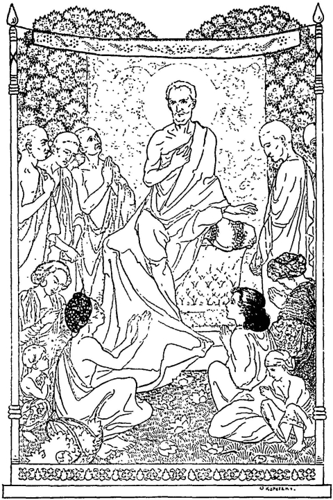 Upon the task of illustrating The Gospel of Buddha, I have spent three years, the first of which was entirely devoted to preparation. By the kind assistance of Dr. Hans Schnorr von Carolsfeld, Director of the Royal Court and State Library at Munich, I was enabled to make very extensive use of the treasures of this institution, and I am under great obligations to him for the courtesies extended to me. Above all I endeavored to obtain a solid foundation for my work by acquiring a clear conception of the personality of the Buddha from religious, historical and artistic standpoints and by familiarizing myself with all the Buddhist dogmas, symbols and religious observances.