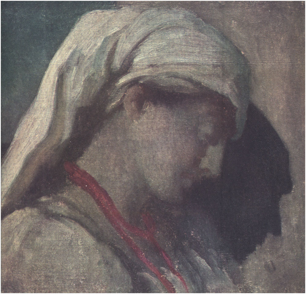 1892. Rizpah (the small study in oils). (7 × 7 inches.) S.S.