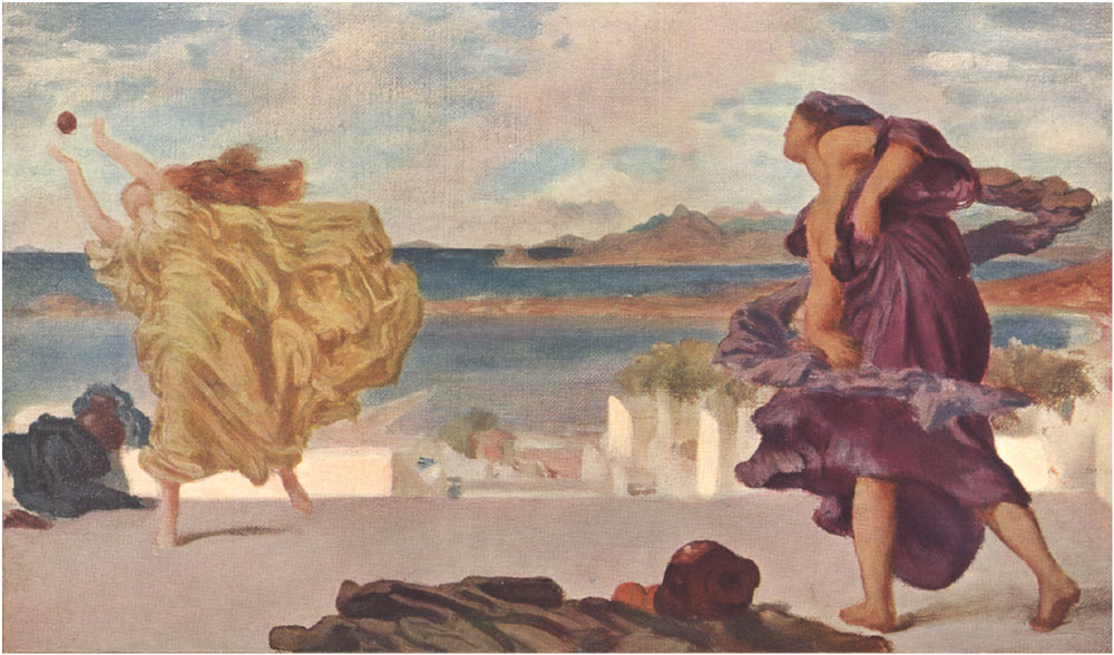 1889. Greek Girls playing at Ball. (45 × 78 inches.) R.A. See Sketches, Leighton House Collection.