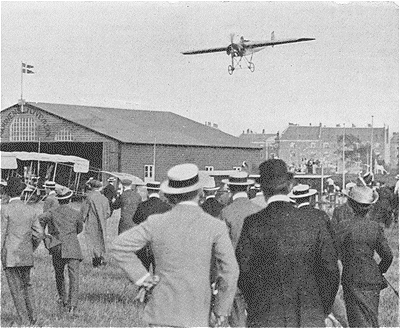 Parti de Stockholm le dimanche 29 juin à 2 heures de l'après-midi, il atterrit à Copenhague (550 kil.) à 7 heures du soir. Le lendemain, il est reçu par le roi, et, le mardi à l'aube, il reprend son vol, franchissant d'une traite les 300 kilomètres qui séparent Copenhague de Hambourg. Après deux heures d'arrêt dans cette dernière ville, il repart à 9 h. 50 et arrive à la Haye à une heure, ayant couvert dans sa matinée une distance totale de 720 kilomètres. Enfin, mercredi à 9 heures du matin, malgré une pluie torrentielle, l'aviateur quitte la Haye. Deux heures plus tard, il atterrit à Compiègne, d'où il gagne ensuite Villacoublay avec plusieurs camarades qui lui font dans les airs un cortège triomphal.