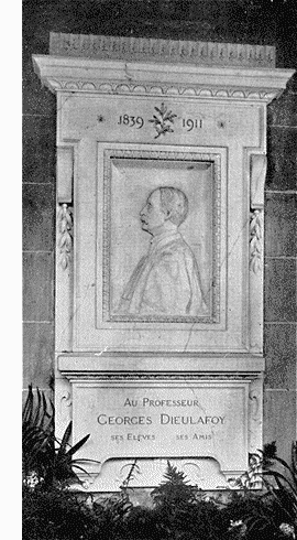 Les élèves, les amis du professeur Georges Dieulafoy ont élevé à ce grand médecin un monument commémoratif qui est à la fois un hommage d'admiration à son caractère, à sa haute valeur professionnelle et un tribut de gratitude pour tous les services qu'il a rendus, au cours de sa belle et calme carrière, à la science et à l'humanité.