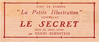 1º LA PETITE ILLUSTRATION, Série-Théâtre n° 21: Le Secret, de M. Henry Bernstein;