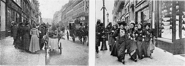 grands couturiers, guettant au passage les bandes rieuses: ouvrières,