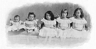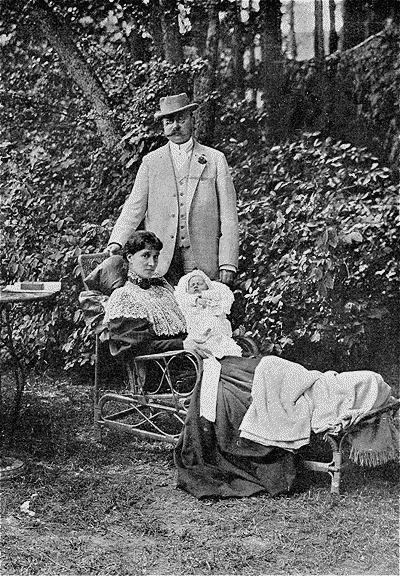 Le nouveau grand-duc, âgé de cinquante-trois ans, a épousé, en 1893, une infante de Portugal, la princesse Marie-Anne de Bragance. De cette union sont nées six filles: Marie-Adélaïde, Charlotte, Hilda, Antonia, Elisabeth et Sophie; l'aînée a onze ans et demi, la plus jeune en aura bientôt quatre. Ainsi qu'en témoigne une photographie de 1902 qui, au nombre de cinq (un autre document montre la dernière entre les bras de sa mère), les représente rangées en flûte de Pan, elles sont charmantes, les petites princesses; nul souci ambitieux ne semble altérer leur sérénité enfantine, et, si elles regrettent l'absence d'un frère espéré, sans doute ignorent-elles encore cette peu galante loi salique dont la rigueur interdit à leur sexe la possession du trône autour duquel elles prennent leurs ébats.