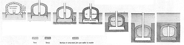 Les étapes d'immersion et de fonçage du caisson.--Avant d'expliquer comment on arrive dans cette chambre de travail et ce qui s'y passe, indiquons la série des positions successives du caisson, que nous avons figurées dans la série de schémas ci-contre.