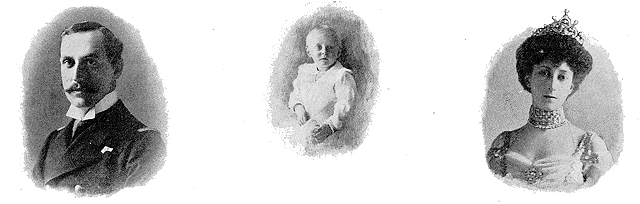 | Le roi Haakon VII. | Le petit prince héritier Olaf. | La reine Maud de Norvège. |