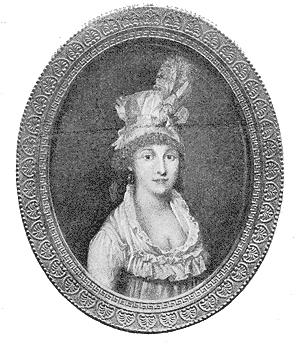 La miniature de Julie par le peintre Elouis, qui appartient à M. Léon Séché et dont il a donné en tête de son livre une reproduction, nous la peint extrêmement séduisante, sous son chapeau de soie rose. L'apparence est enfantine; le corps frêle, les lèvres minces, le nez droit; le visage est éclairé par deux grands yeux qui semblent l'absorber tout entier. Il y a là, dans ces deux lumières trop brillantes, quelque marque du mal profond qui devait, tout emporter et que l'on pressentait déjà au moment du mariage. Elle avait vingt-cinq ans quand elle posa devant Elouis.