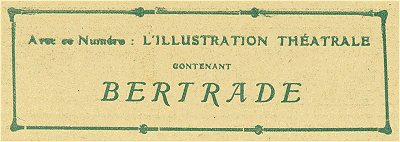 1° L'ILLUSTRATION THÉÂTRALE contenant le texte complet de Bertrade