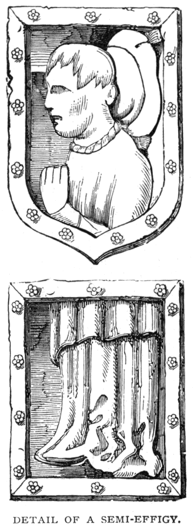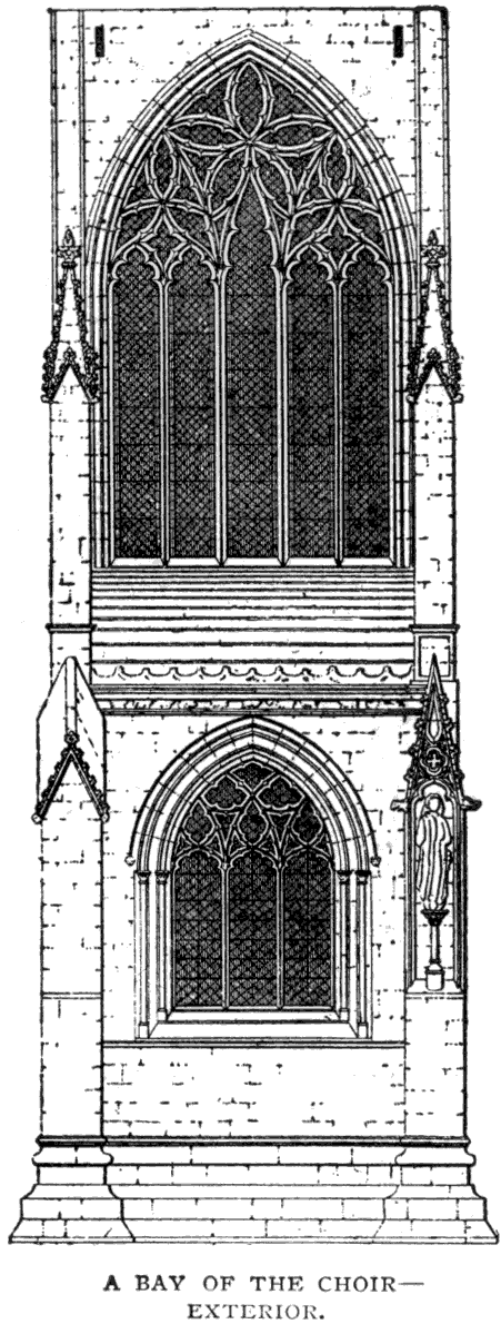 On the south side of the Lady Chapel, between the buttresses, are three erections, which were no doubt built at the same time as the Lady Chapel itself. They have been known as "the Mortuary Chapels," and also as "the Vestries." They were probably built for the former purpose.