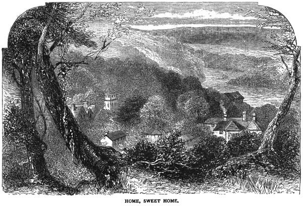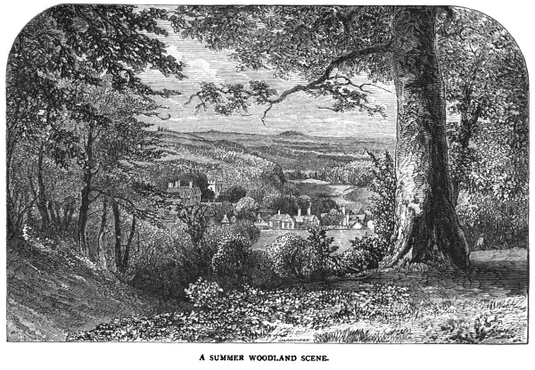 It would be difficult to give the reader any very definite idea of the appearance of our cottage outside or inside. Though not very far from the village, it was so buried in trees of every sort—elms, oaks, lindens, chestnuts, pines, and poplars—that no photographer, or artist either, could ever sketch it. Much less can I. But just imagine to yourself all kinds of pretty shrubberies, and half-wild lawns, and rustic rose-clad arches, and quaint old gables, and verandahs over which the sweet-scented mauve wistaria fell in clusters in spring, when the yellow laburnum and the lilacs were in bloom. Let flowers peep out from every corner and nook—the snowdrop, the crocus, daffodil and primrose in April, with wild flowers on the lawns in summer, and syringas and roses even in the hedges; and people the whole place with birds of every size, from the modest wee wren or little tit to the speckled mavis and orange-billed blackbird, that sang every morning to welcome the sunrise; let wild pigeons croodle among the ivy that creeps around the poplar-trees, and nightingales make spring nights melodious; and imagine also all kind of coaxing walks, that seemed to lead everywhere, but never land one anywhere in particular; and you will have some faint notion what Rowan-Tree Cottage was like.