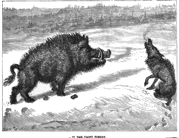 But we dearly love Berkshire for all that, love its rolling meadows, its fields of waving corn, the trees that go sweeping over its round hills like cloudlands of green; its placid river, its quiet streams, where the glad fish leap in spring and summer; love its birds, love its beasts, all the way up from the timid wee field-mouse to the saucy fox who leads so merry a life in the woods; and love its people, its peasantry—honest and true are they, sometimes rough, but always right. Yes, and I am not sure we have not even a kindly regard for its long-nosed pigs. So there!