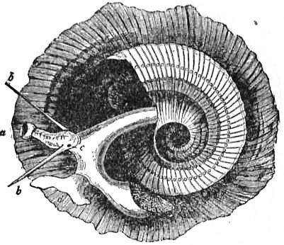 The problem of the causes of the torsion of the Gastropod body has been much discussed. E.R. Lankester in the ninth edition of this work attributed it to the pressure of the shell and visceral hump towards the right side. He referred also to the nautiloid shell of the larva falling to one side. But these are two distinct processes. In the larva a nautiloid shell is developed which is coiled exogastrically, that is, dorsally, and the pallial cavity is posterior or ventral (fig. 2, C): the larva therefore resembles Nautilus in the relations of body and shell. The shell then rotates towards the left side through 180°, so that it becomes ventral or endogastric (fig. 2, D). The pallial cavity, with its organs, is by this torsion moved up the right side of the larva to the dorsal surface, and thus the left organs become right and vice versa. In the subsequent growth of the shell the spire comes to project on the right side, which was originally the left. Neither the rotation of the shell as a whole nor its helicoid spiral coiling is the immediate cause of the torsion of the body in the individual, for the direction of the torsion is indicated in the segmentation of the ovum, in which there is a complete 507 reversal of the cleavage planes in sinistral as compared with dextral forms. The facts, however, strongly suggest that the original cause of the torsion was the weight of the exogastric shell and visceral hump, which in an animal creeping on its ventral surface necessarily fell over to one side. It is not certain that the projection of the spire to the originally left side of the shell has anything to do with the falling over of the shell to that side. The facts do not support such a suggestion. In the larva there is no projection at the time the torsion takes place. In some forms the coiling disappears in the adult, leaving the shell simply conical as in Patellidae, Fissurellidae, &c., and in some cases the shell is coiled in one plane, e.g. Planorbis. In all these cases the torsion and asymmetry of the body are unaffected.