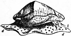 When the shell is sinistral the asymmetry of the organs is usually reversed, and there is a complete situs inversus viscerum, the direction of the spiral of the shell corresponding to the position of the organs of the body. Triforis, Physa, Clausilia are examples of sinistral Gastropods, but reversal also occurs as an individual variation among forms normally dextral. But there are forms in which the involution is “hyperstrophic,” that is to say, the turns of the spire projecting but slightly, the spire, after flattening out gradually, finally becomes re-entrant and transformed into a false umbilicus; at the same time that part which corresponds to the umbilicus of forms with a normal coil projects and constitutes a false spire; the coil thus appears to be sinistral, although the asymmetry remains dextral, and the coil of the operculum (always the opposite to that of the shell) sinistral (e.g. Lanistes among Streptoneura, Limacinidae among Opisthobranchia). The same, mutatis mutandis, may occur in sinistral shells.
