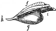 e, Margin of the mantle-skirt. f, Gill lamellae (not ctenidia, but special pallial growths, comparable with those of Pleurophyllidia). g, The branchial efferent vessel. h, Factor of the branchial advehent vessel. i, Interspaces between the muscular bundles of the root of the foot, causing the separate areae seen in fig. 5, c. |