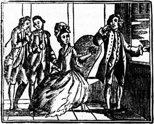 In consequence of this resolution, she addressed herself particularly to him, and inquired, whether he had been to a camp, which was at some little distance from Smiledale? and whether he had yet learned, or intended to learn, the manual exercise? To this question, as he was very inattentive, he at first returned no answer; and upon its being repeated, he misunderstood her meaning, and replied—No, Miss! I have seen no Emanuel, nor do I know any such person.—This misapprehension afforded great entertainment to the younger part of the company, who laughed for some time at his mistake; till Mr. Placid inquired into the cause, and, with great good-nature, blamed them for the indulgence of their mirth at Mr. Speedmore's expense; and Miss Wagstaff, with a smile at Miss Myra, added, That the laugh was turned since the earwig had escaped. She blushed at the consciousness which she felt at the reproof, and giving her friend a tap on the shoulder, enjoined her to be silent, declaring, she would not again speak to the young man, though he should gnaw his stick down to the ferrel.