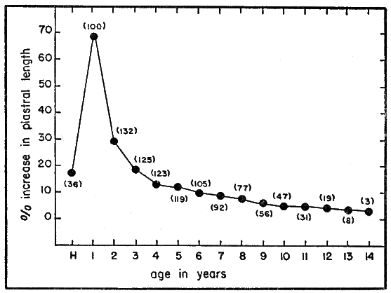 Routine handling of each turtle captured at the Damm Farm consisted of: marking, weighing and measuring turtle; recording the exact place of capture, body temperature and environmental temperature; and, recording miscellaneous items such as the presence of ectoparasites, injuries, distinctive markings, and in some instances, the approximate age of the turtle.