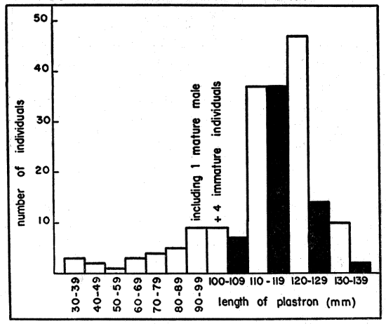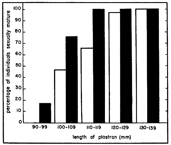 In all the specimens examined, it was evident that ovulation had occurred or would occur in two successive seasons. Senile or young females might, however, be expected to skip a laying season if only one ovary was functioning.