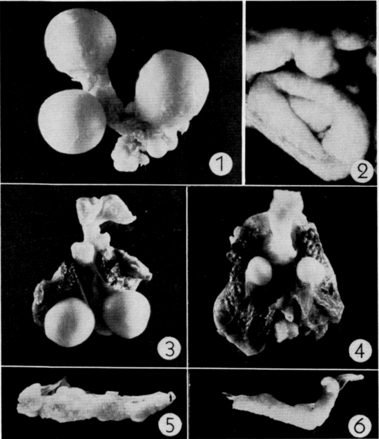 Size of ovarian follicles was determined by means of a clear plastic gauge containing notches 5, 10, 15, 20, and 25 millimeters wide. The number of follicles within a given size range could be quickly determined by finding the smallest notch into which the follicles fit. It was necessary to weigh all ovaries after preservation since some of them had not been weighed when fresh. Since all ovarian samples were preserved in the same manner, weights [Pg 550] remained relatively the same. Preserved material was lighter than fresh by an average of 13 per cent. Follicles less than one millimeter in diameter were not counted. Corpora lutea and corpora albicantia were studied under a binocular dissecting microscope. No histological studies were made of the female reproductive system.