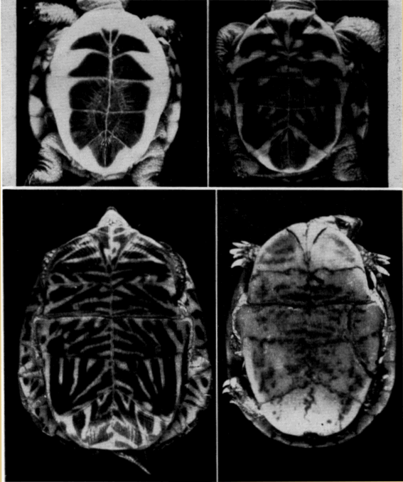 Cagle's findings concerning Pseudemys scripta (1950:38) and Chrysemys picta (1954:228-9) suggest that these species lay more than one clutch per season, at least in the southern parts of their ranges. Carr (1952) indicated that multiple layings were known in most species of marine turtles (families Dermochelydae and Chelonidae) and strongly suspected in other species. Other turtles recorded to have produced multiple clutches in a single season (based chiefly on captive specimens or cultured populations) include: the starred tortoise, Geochelone elegans (Deraniyagala, 1939:287); the Asiatic trionychid, Lissemys punctata (op. cit.:304); the diamond-backed terrapin, Malaclemys terrapin (Hildebrand and Prytherch, 1947:2); and the Japanese soft-shelled turtle, Trionyx japonicus (Mitsukuri, 1895, cited by Cagle, 1950:38).