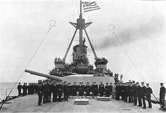 M. Poincaré se plaça droit en face de M. Fallières, derrière lequel disparut M. Briand. Il fallut que M. Barthou, vice-président du Conseil, tirât par la manche son trop modeste président pour que celui-ci avançât sur la première ligne,--ce qui, d'ailleurs, le rapprocha du sévère M. Antonin Dubost. M. Fallières était exactement à égale distance du président de la Chambre, à sa droite, et du président du Sénat, à sa gauche, comme il est absolument nécessaire pour l'équilibre constitutionnel. Il avait derrière lui la jeune cohorte des ministres. Jeune, en effet; l'air de jeunesse de ce ministère est, de ses qualités, une de celles qui frappent d'abord, l'observateur, et le réjouissent.