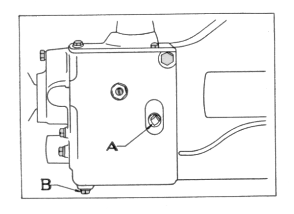 The clutch throwout bearing should be lubricated with one ounce of light viscous grease[A] every 500 miles. A pressure fitting is provided on the right side of the clutch bell housing.
