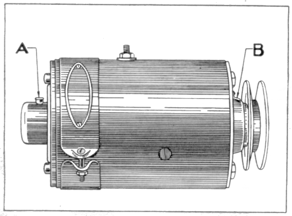 Supply three or four drops (no more) of engine oil to each oil cup "A" and "B" every 1000 miles. Do not attempt to supply more oil as it may interfere with the functioning of the generator.