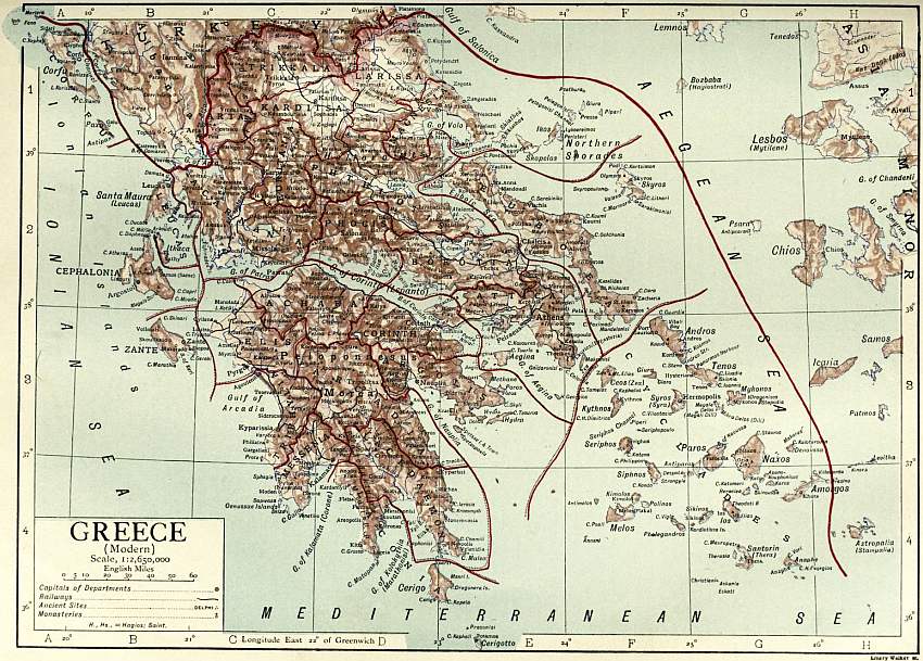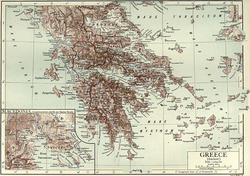 The most remarkable characteristic of Greek is one conditioned by the geographical aspect of the land. Few countries are so broken up with mountains as Greece. Not only do mountain ranges as elsewhere on the European continent run east and west, but other ranges cross them from north to south, thus dividing the portions of Greece at some distance from the sea into hollows without outlet, every valley being separated for a considerable part of the year from contact with every other, and inter-communication at all seasons being rendered difficult. Thus till external coercion from Macedon came into play it was never possible to establish a great central government controlling the Greek mainland. The geographical situation of the islands in the Aegean equally led to the isolation of one little territory from another. To these geographical considerations may be added the inveterate desire of the Greeks to make the πόλις, the city state, everywhere and at all times an independent unit, a desire which, originating in the geographical conditions, even accentuated the isolating effect of the natural features of the country. Thus at one time in the little island of Amorgos there were no less than three separate and independent political units. The inevitable result of geographical and political division was the maintenance of a great number of local characteristics in language, differentiating in this respect also each political community from its nearest neighbours. It was only natural that the inhabitants of a country so little adapted to maintain a numerous population should have early sent off swarms to other lands. The earliest stage of colonization lies in the borderland between myth and history. The Greeks themselves knew that a population had preceded them in the islands of the Cyclades which they identified with the Carians of Asia Minor (Herodotus i. 171; Thucydides i. 4. 8). The same population indeed appears to have preceded them on the mainland of Greece, for there are similar place-names in Caria and in Greece which have no etymology in Greek. Thus the endings of words like Parnassus and Halicarnassus seem identical, and the common ending of place-names in -ινθος, Κόρινθος, Προβάλινθος, &c., seems to be the same in origin with the common ending of Asiatic names in -nda, Alinda, Karyanda, &c. Probably the earliest portion of Asia Minor to be colonized by the Greeks was the north-west, to which came settlers from Thessaly, when the early inhabitants were driven out by the Thesprotians, who later controlled Thessaly. The name Aeolis, which after times gave to the N.W. of Asia Minor, was the old name for Thessaly (Hdt. vii. 176). These Thesprotians were of the same stock as the Dorians, to whose invasion of the Peloponnese the later migration, which carried the Ionians to Asia and the Cypriot Greeks to Cyprus, in all probability was due. From the north Aegean probably the Dorians reached Crete, where alone their existence is recorded by Homer (Odyssey, xix. 175 ff.; Diodorus Siculus v. 80. 2); cp. Fick, Vorgriechische Ortsnamen (1906).
